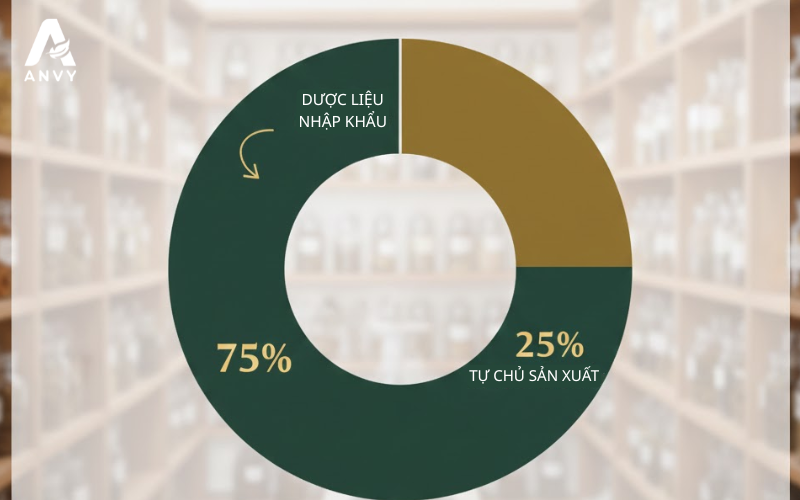 Mặc dù có nguồn tài nguyên dồi dào, thị trường dược liệu trong nước đang phải đối mặt với mức độ tự chủ rất thấp, dẫn đến sự phụ thuộc vào nhập khẩu: