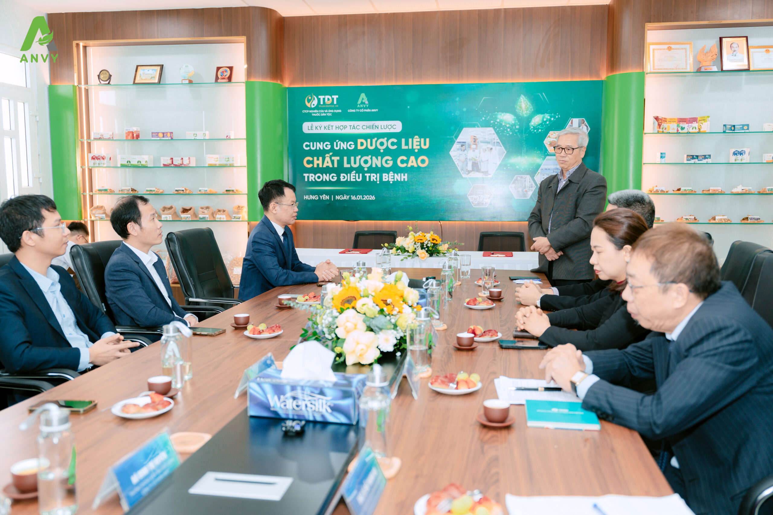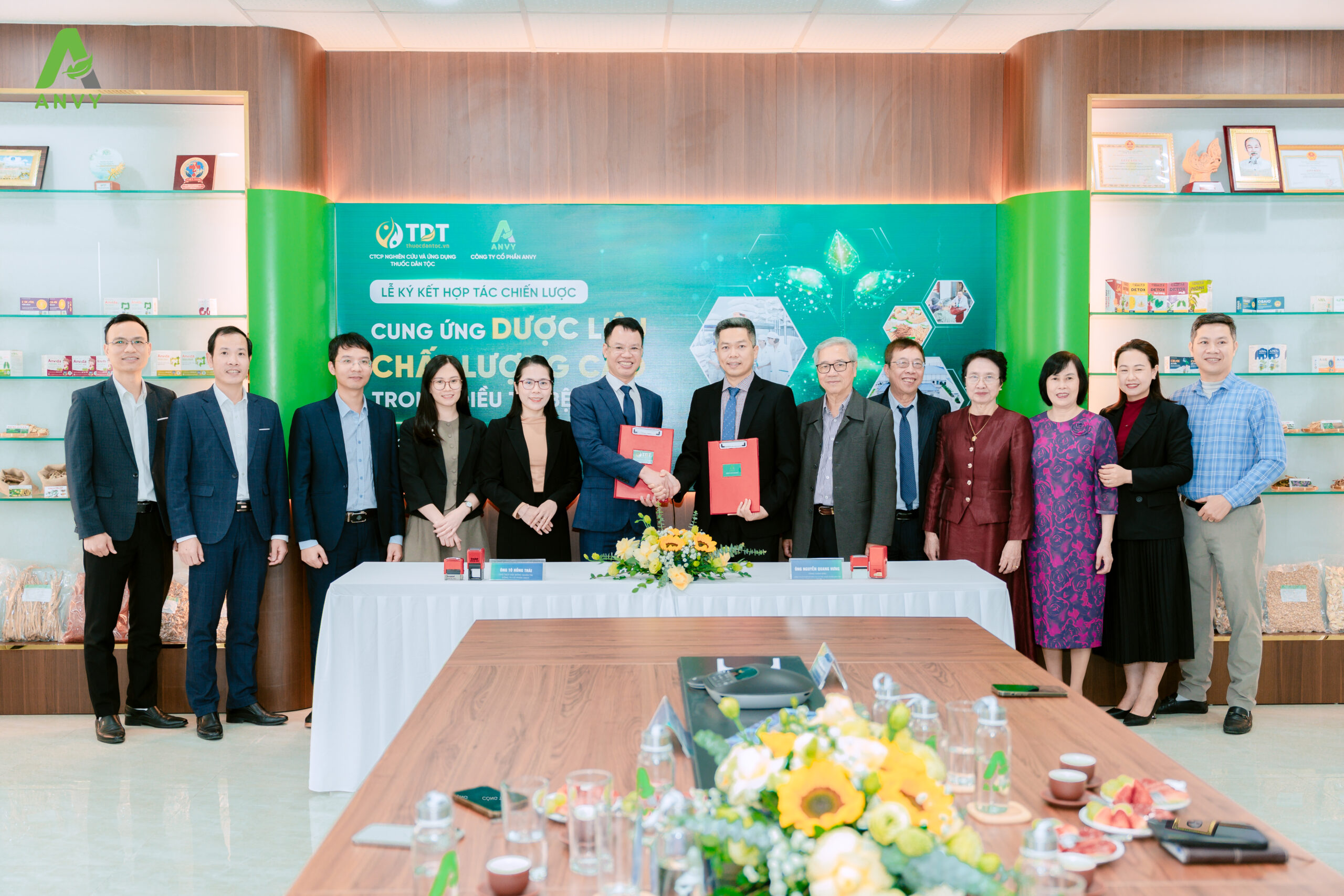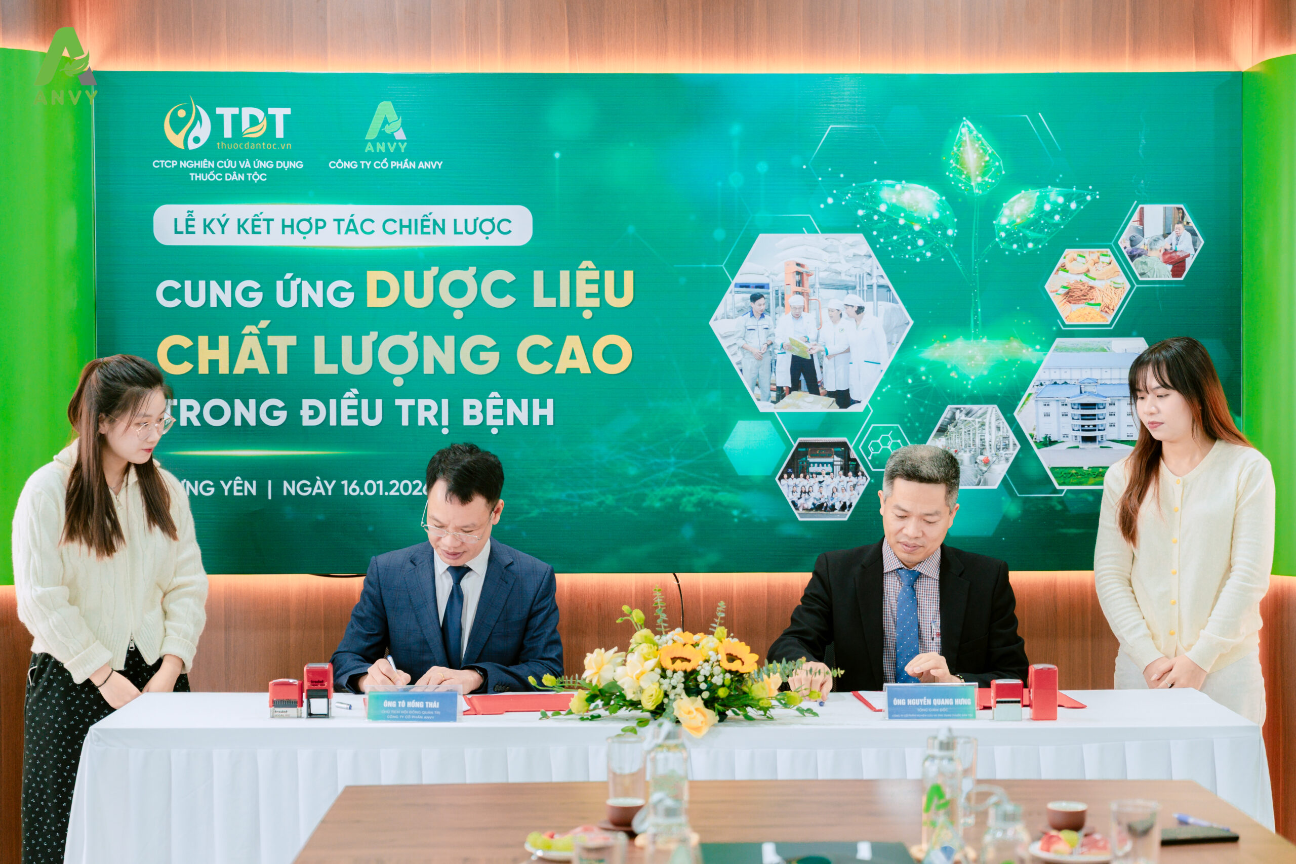 Ngày 16/01/2026, tại Nhà máy ANVY (thôn Bá Khê, xã Văn Giang, tỉnh Hưng Yên), Công ty Cổ phần Nghiên cứu và Ứng dụng Thuốc Dân Tộc và Công ty Cổ phần ANVY đã chính thức ký kết hợp tác chiến lược trong cung ứng dược liệu chất lượng cao phục vụ điều trị bệnh.