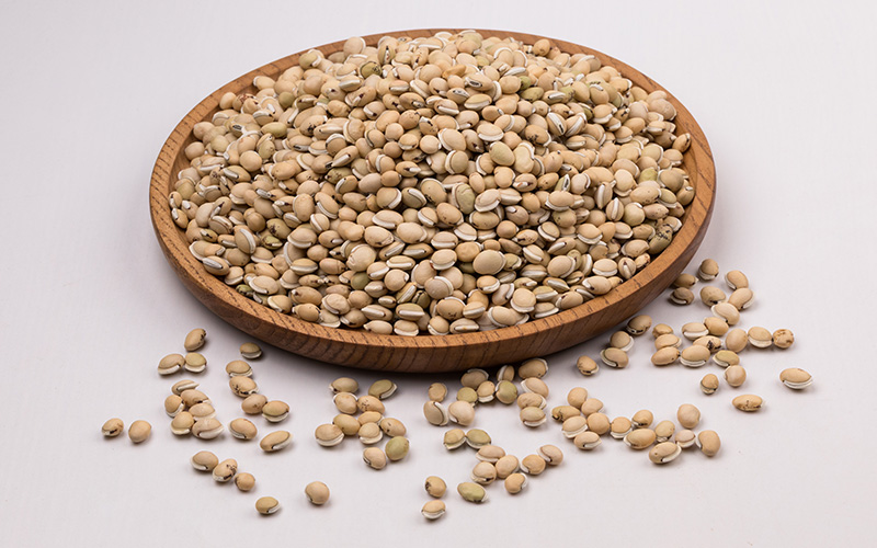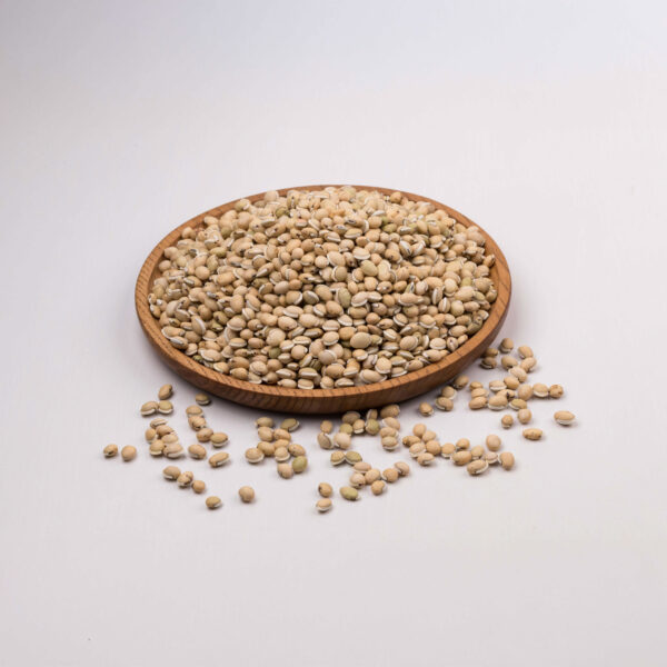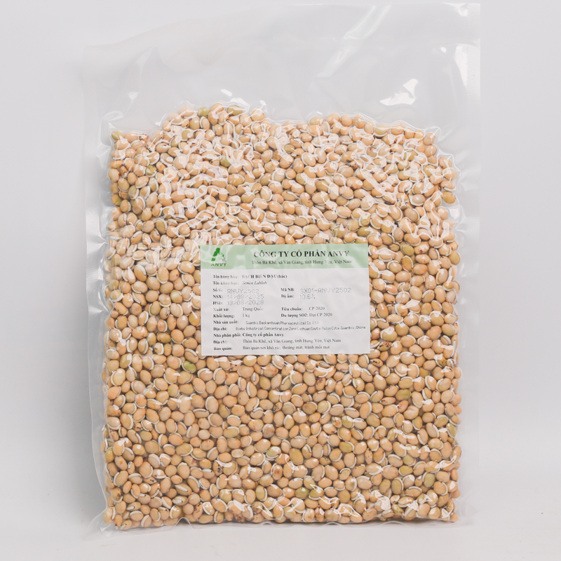 Hàng chọn, đều đẹp. Hạt hình bầu dục hoặc hình trứng, dẹt, dài 8–13 mm, vỏ mỏng trắng ngà, bóng, rốn hạt cong hình lưỡi liềm. Chất cứng chắc, vỏ giòn, có hai lá mầm màu trắng ngà. Dược liệu có mùi nhẹ, vị nhạt, khi nhai có mùi tanh nhẹ của đậu.