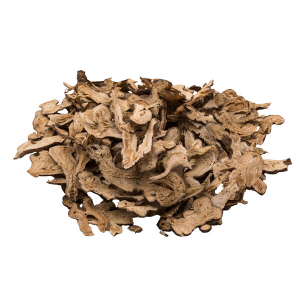 Thân rễ hình chùy, có nhiều mấu phình ra, dài 5–10 cm, đường kính 2–5 cm. Mặt ngoài màu nâu nhạt hoặc xám, có vân hình hoa cúc và nhiều nếp nhăn dọc. Dược liệu thái phiến khô chọn củ 2 năm. Chất cứng, khó bẻ gãy, mặt cắt màu vàng nâu, rải rắc khoang chứa tinh dầu, mùi đặc trưng.