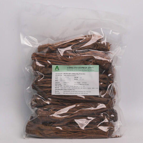 Rễ dài 10–20 cm, gồm nhiều nhánh, chia ba phần: quy đầu, quy thân và quy vĩ. Mặt ngoài màu nâu nhạt, có nhiều nếp nhăn dọc, mặt cắt ngang vàng ngà, thấy rõ vân tròn và điểm tinh dầu. Dược liệu Hàng nguyên củ, không xông diêm. Mùi thơm đặc trưng, vị ngọt, cay, hơi đắng.