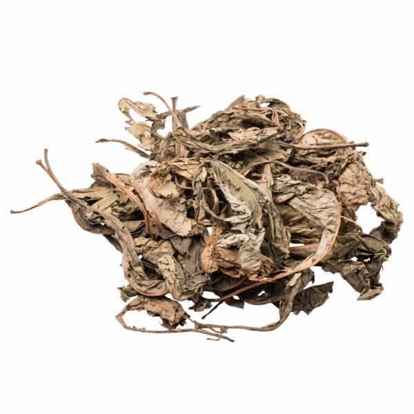 Dược liệu khô lá nguyên hoặc cắt nhỏ, dày, dai. Mặt trên màu lục nâu hoặc nâu tím, màu dưới màu nâu nhạt. Mùi nhẹ, vị chát hơi chua.